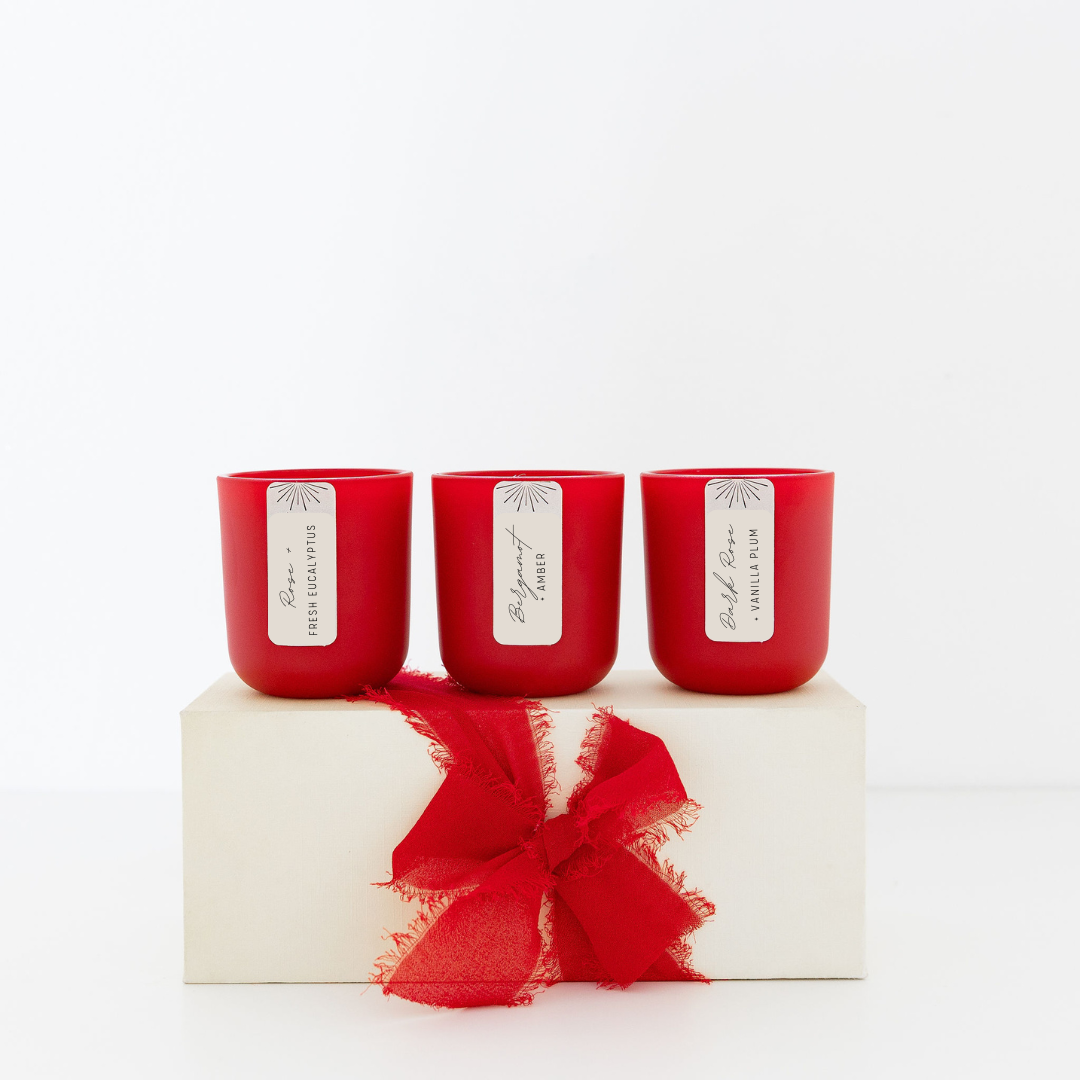 Each box comes with 3 - 2.5 oz Red Vessel candles featuring our best selling favorites!